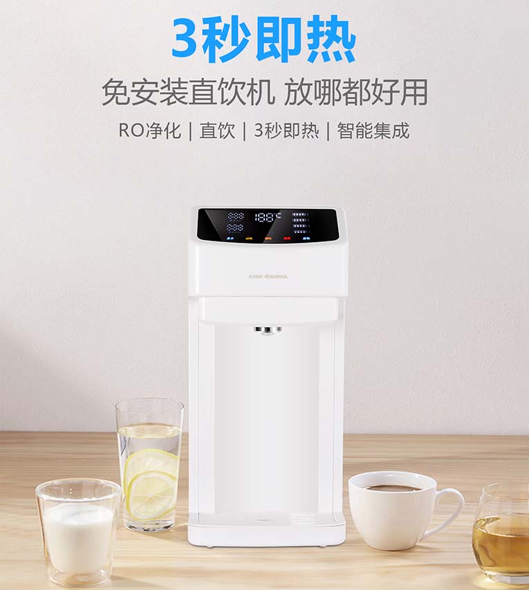 日常飲用水中含有大量的雜質、細菌、微生物、重金屬等有害物質,進入體內,將會嚴重危害我們和家人的健康,健康是一種負責的生活態度,別再用您的身體過濾了!集成灶十大品牌、廚電行業十大品牌科恩電器凈飲一體機R6028移動水吧采用四膜七級精濾技術,全新厚膜即熱黑科技,多檔控溫、3秒即熱、1鍵出水,干掉傳統凈水機、飲水機、加熱壺、保溫壺、調溫壺、管線機,六合一引爆全新凈水革命。