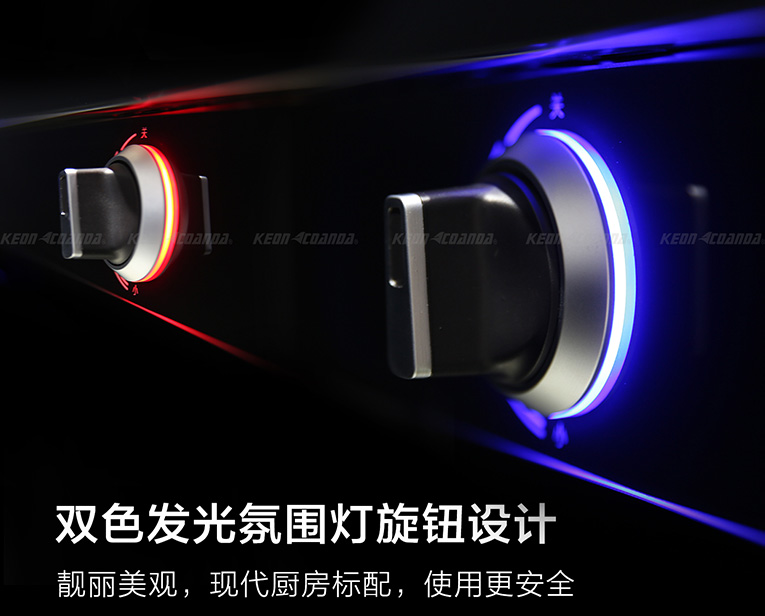 集成灶十大品牌科恩智能炫彩系列集成灶D620采用非凡設計,五合一全能配置,結合造就簡約流暢的現代風格,與整體櫥柜搭配彰顯氣質,體現尊貴華麗風范。機頭采用藍色氛圍燈,雙色發(fā)光氛圍燈灶具旋鈕設計,整機不僅顯得靚麗美觀,為廚房增添光彩,灶具旋鈕雙色設計更能保證集成灶的使用安全。