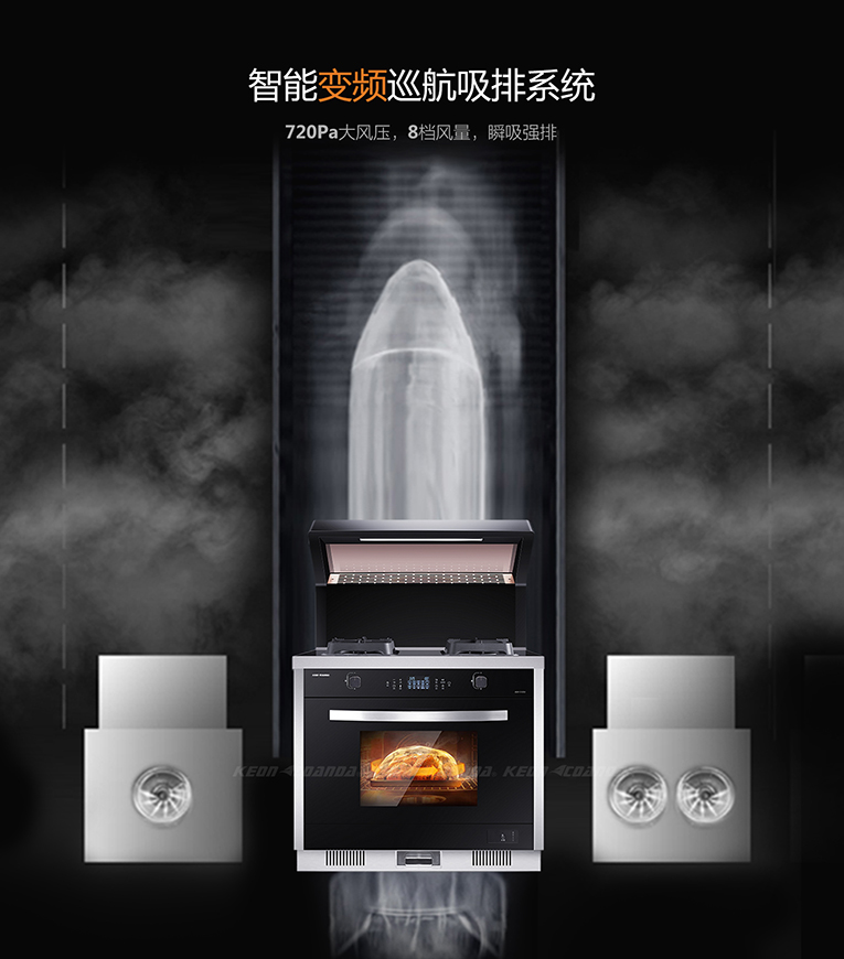 另外,科恩D125X變頻蒸烤消一體集成灶采用62L食品級(jí)304不銹鋼內(nèi)膽大容量蒸烤箱設(shè)計(jì),噴氣式4D立體蒸加底部“薩萊米”進(jìn)口陶瓷加熱盤讓食物受熱更加均勻,內(nèi)腔頂部包裹發(fā)熱絲,蒸制過程防止了蒸汽上升產(chǎn)生的冷凝水珠;烤箱模式采用智能恒溫烤箱,耐高溫抗氧化,表面不易沾油污,耐腐蝕耐高溫,頂部2組熱管4D烘烤,熱量均勻色澤亮麗!