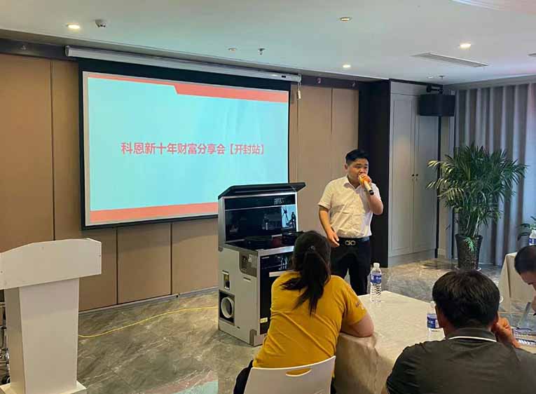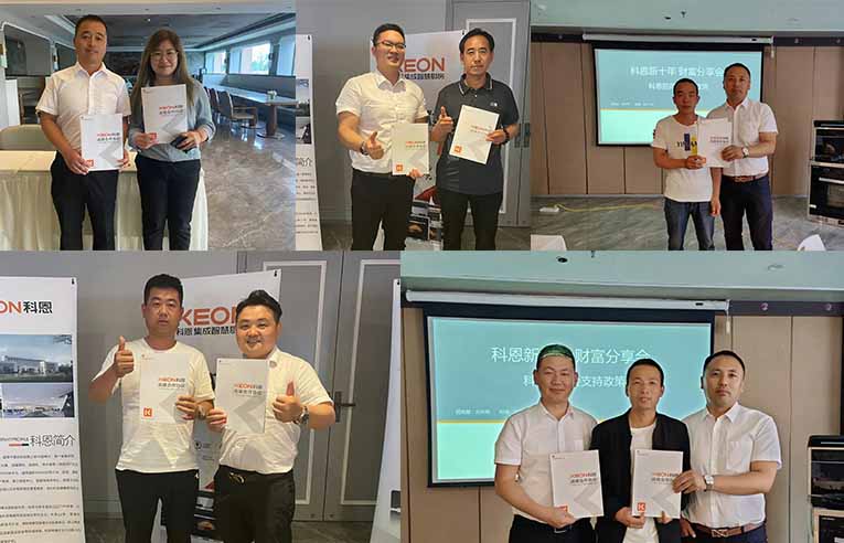 財富分享會上,品牌運營中心費總對科恩集成灶接下來新模式運營進行了簡要介紹,費總重點表示“你只負責開店收錢,其它一切交給公司”!加入科恩大家庭,將擁有團隊打造、終端升級、導購訓練、促銷推廣、渠道導入、服務體系等一系列育商課程,線上線下將不定期舉行總裁簽售會、超級廠購會等活動,總部操盤賦能終端,親臨店鋪實戰幫扶,手把手帶領經銷商策劃店面布局、活動推廣以及如何引流等。