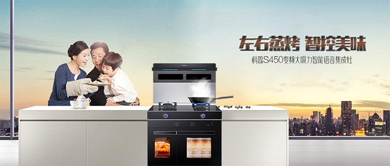 集成灶十大品牌、廚電行業十大品牌科恩S450左右蒸烤集成灶質量有保證,使用性能好,顏值高,助力用戶開啟烹飪新“食”代,是消費者一致稱贊的大師級蒸烤集成灶
