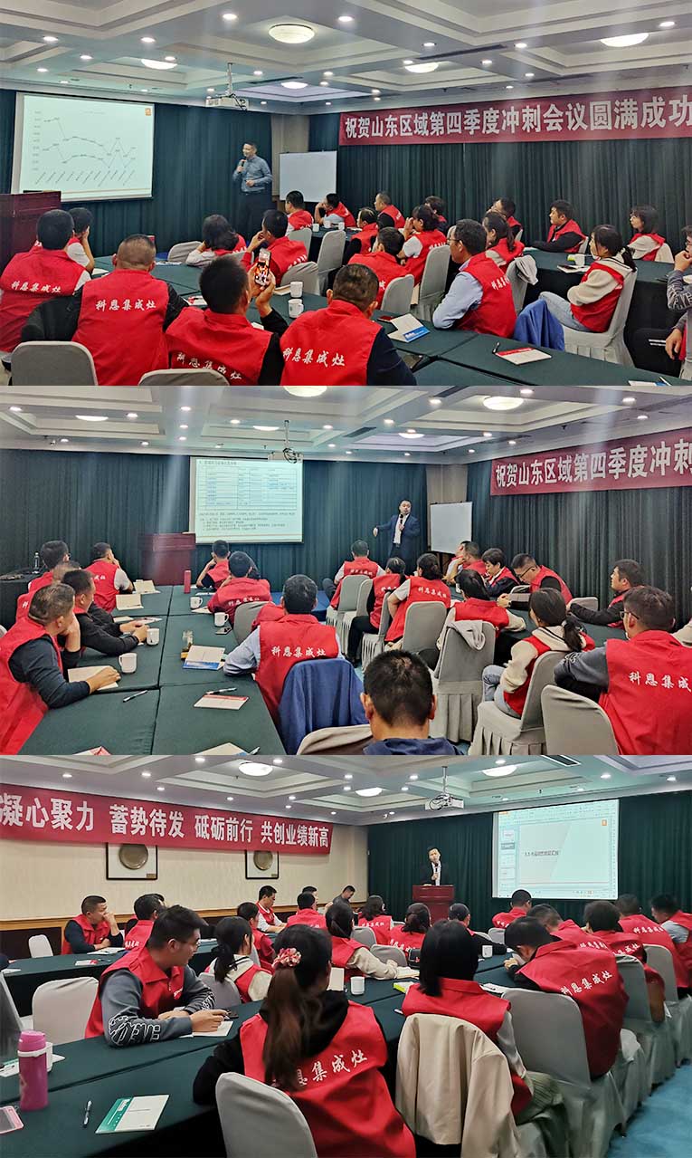10月13-14日,集成灶十大品牌、廚電行業(yè)十大品牌科恩集成灶山東區(qū)域第四季度沖刺會在山東圓滿召開,大區(qū)/區(qū)域/總經(jīng)辦相關負責人以及科恩山東區(qū)域核心經(jīng)銷商齊聚一堂,認真總結(jié)分析市場,并進行針對性特訓,展開全方面營銷技能培訓與交流,助力終端業(yè)績快速增長。