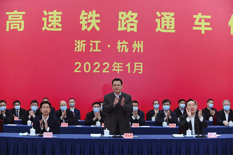 1月8日上午,浙江省委書記、省人大常委會(huì)主任袁家軍在省主會(huì)場(chǎng)出席儀式并宣布杭臺(tái)高速鐵路開通。