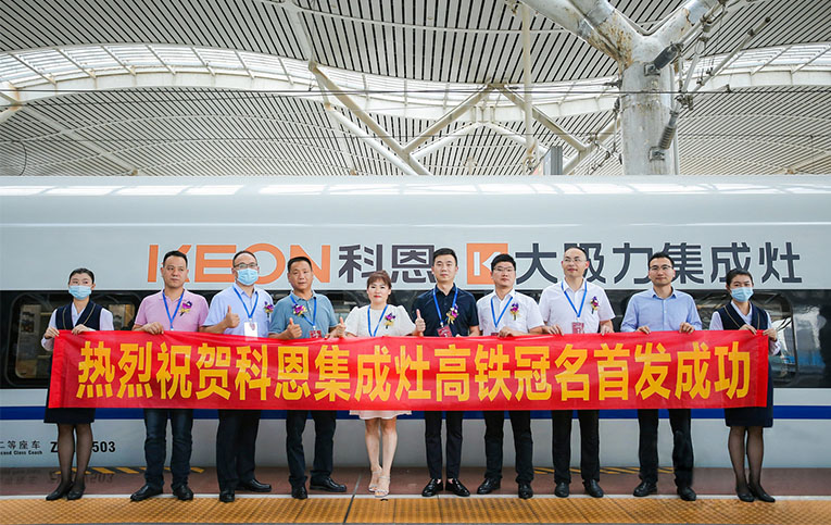 集成灶十大品牌、廚電行業十大品牌科恩集成灶高鐵品牌專列全面冠名,以及嵊新站廣告位上刊,是品宣上的一個重要突破,也是企業愈加強大的一條必經之路,“科恩號”高鐵匯聚強大發展歷程,在中國高鐵速度中駛向越來越美好的未來。