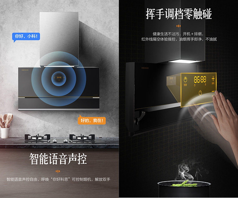 另外,科恩新一代7350變頻大吸力煙機(jī)擁有智能語(yǔ)音+揮手操控功能,智能語(yǔ)音聲控自由,呼喚“你好小科”可控制煙機(jī),揮手調(diào)檔,紅外線(xiàn)隔空體驗(yàn)操控,開(kāi)機(jī)+排煙,揮手即凈,不油膩,同時(shí)還搭載60S延時(shí)關(guān)機(jī)功能,吸盡熱鍋余煙,人離也能凈油煙。