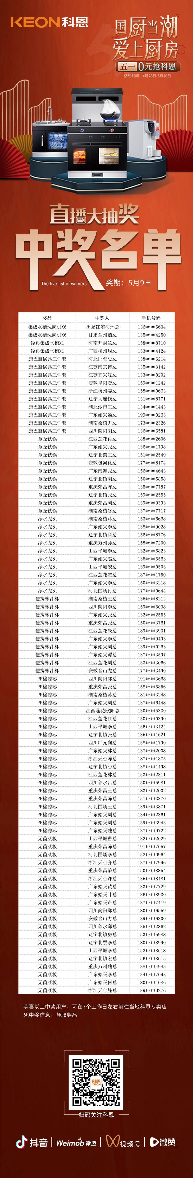 本次0元搶科恩活動已圓滿落下帷幕,接下來,科恩集成灶還將有更多活動福利、大獎等著您,敬請隨時(shí)關(guān)注科恩公眾號以及全國科恩門店,期待下次活動,不見不散!