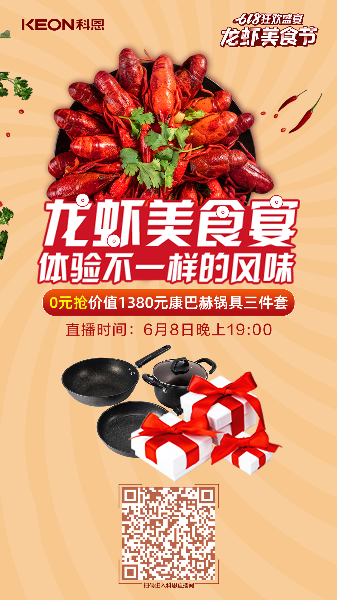 TA來了!TA來了!TA來了!618狂歡盛宴科恩龍蝦美食節(jié)——龍蝦美食宴線上直播終于來了,TA帶著傳統(tǒng)和創(chuàng)新的美味來了,TA帶著誠意滿滿的福利來了,6月8日19點,來科恩直播間,我家的科粉,我來寵?。?!