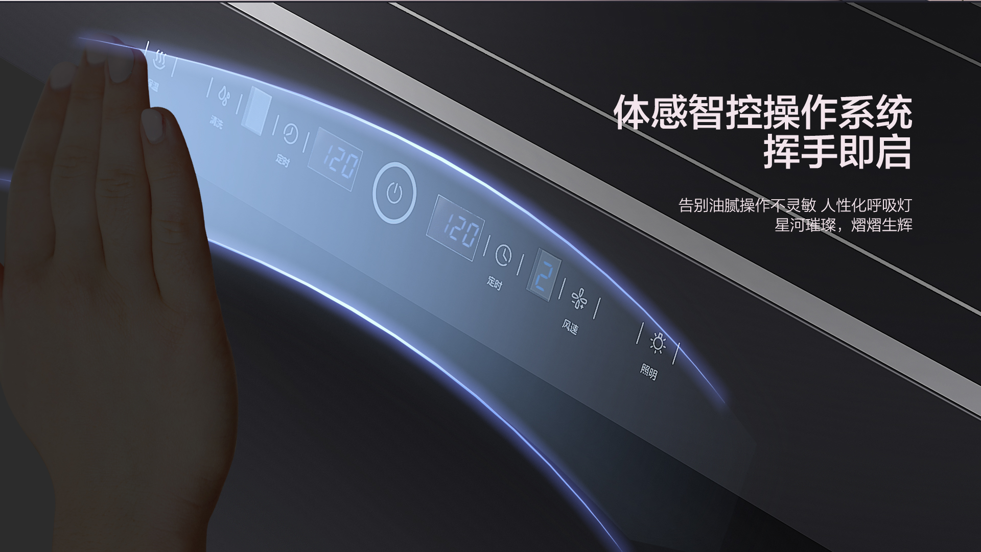 ◆體感智控操作系統(tǒng),揮手即啟,解放雙手,告別油膩和操作不靈敏等情況,面板時(shí)刻保持干凈整潔,下廚無(wú)需手忙腳亂找按鍵!