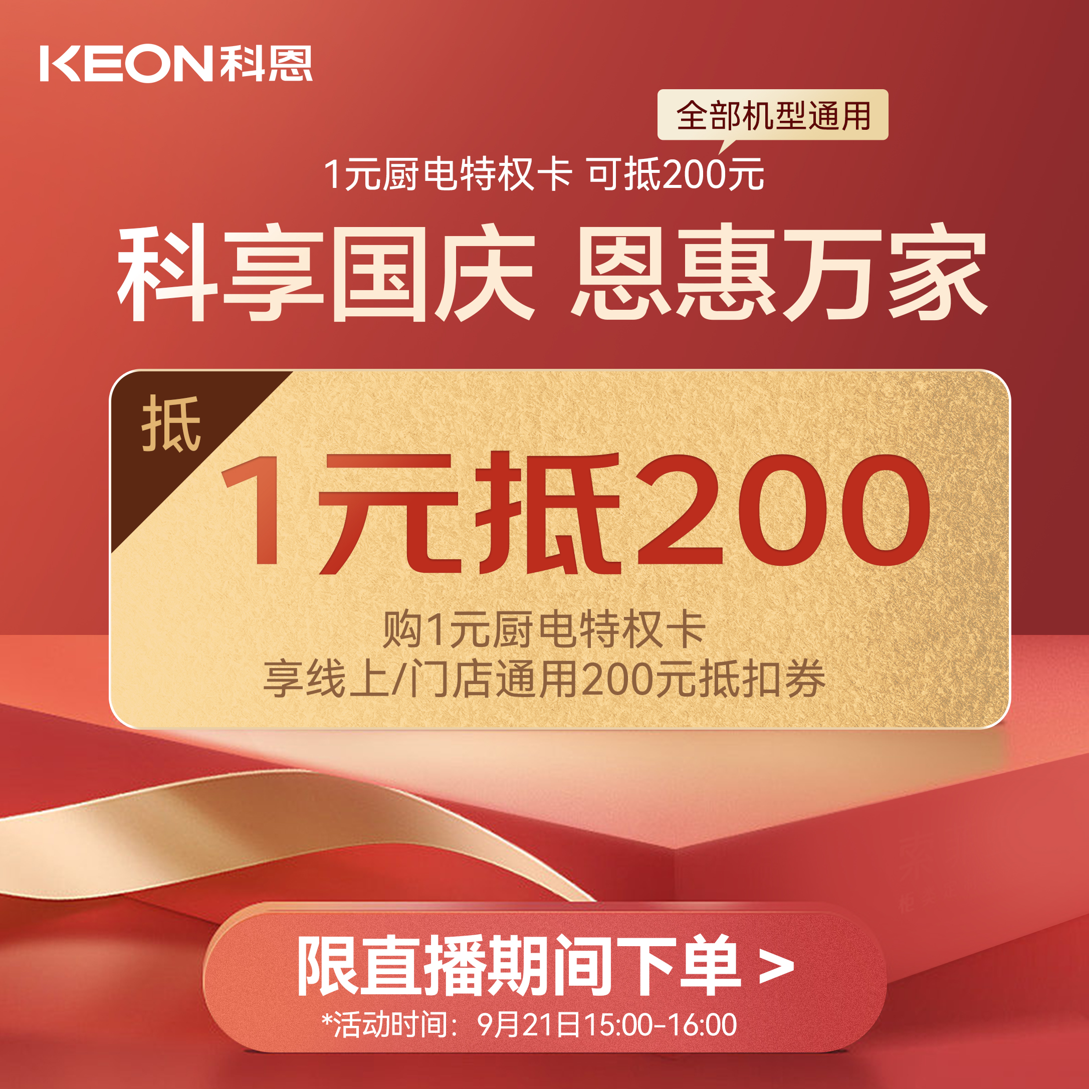 購1元廚電特權卡,享線上/門店通用200元抵扣券