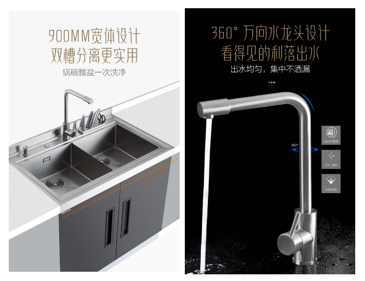 科恩X2多功能集成水槽,手工匠心鑄造,利用先進(jìn)科技打造出高端鉆石品質(zhì),304不銹鋼材質(zhì),900mm寬體設(shè)計(jì),大水槽加寬加深,無(wú)縫成型滴水不漏,小R角污垢無(wú)處可藏,X型導(dǎo)流有效排水,下水更通暢。