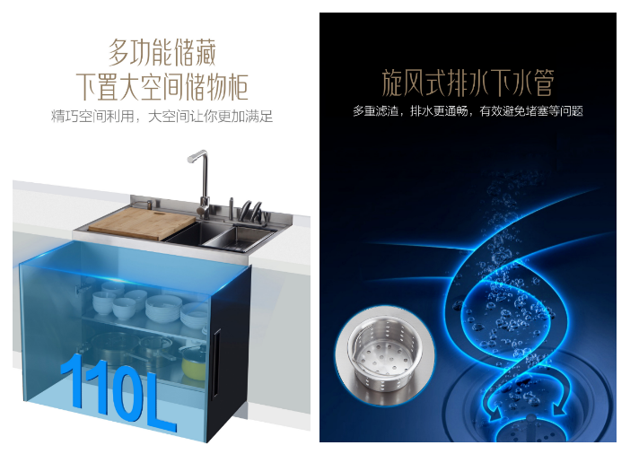 旋風(fēng)式排水下水管,多重濾渣排水更通暢,ABS防臭下水器套裝設(shè)計(jì),耐凍裂防冷凝,有效保護(hù)了櫥柜不受損傷。