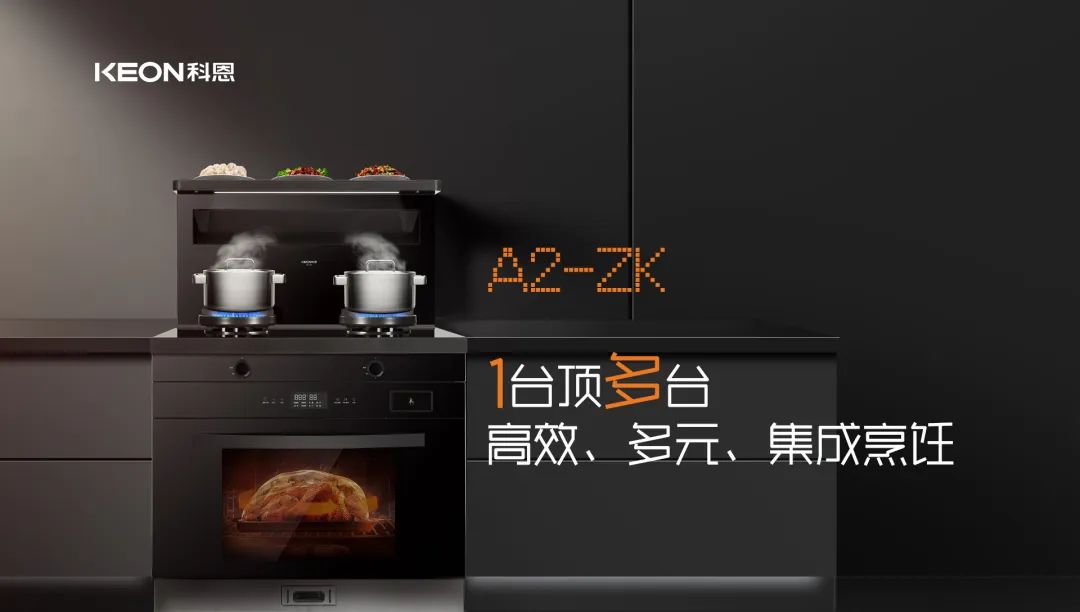 科恩A2蒸烤一體集成灶,集油煙機(jī)、燃?xì)庠睢㈦娬粝?、電烤箱、解凍機(jī)、發(fā)酵機(jī)、烘干機(jī)、保溫箱,8臺(tái)一體。一平方就籠絡(luò)了整個(gè)廚房電器,大幅度節(jié)省了廚房空間,小廚房也能有大作為。
