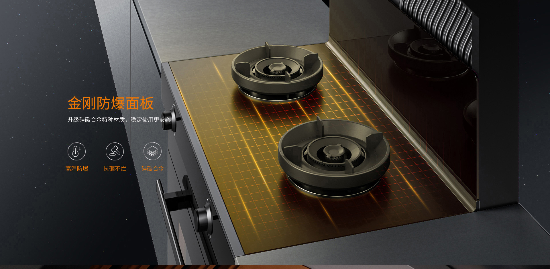 硅碳合金板解決廚房安全隱患!硅碳合金特種材質可耐高溫1500℃,高于國標3倍以上,更安全!