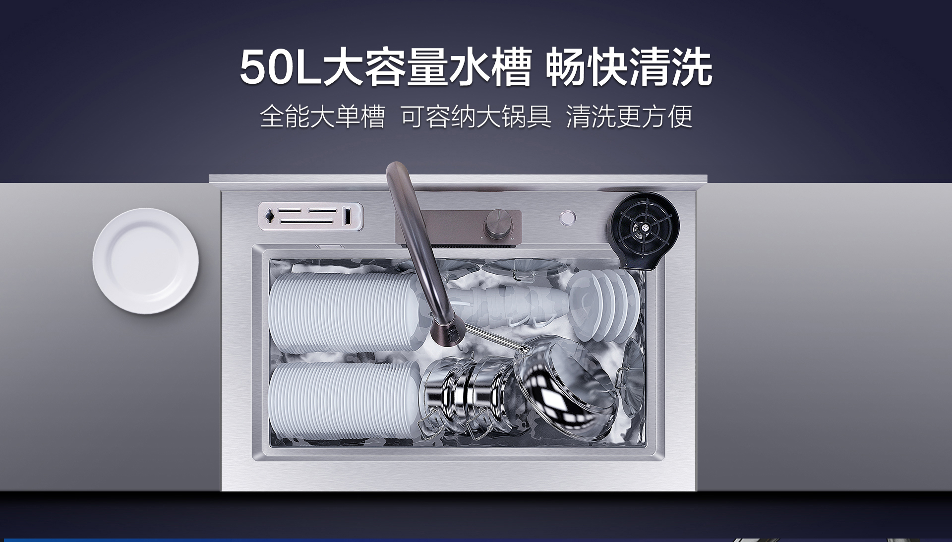 X6L將水槽、洗碗機、果蔬凈化器、消毒柜、櫥柜融為一體,足矣解決廚房所有清洗難題。