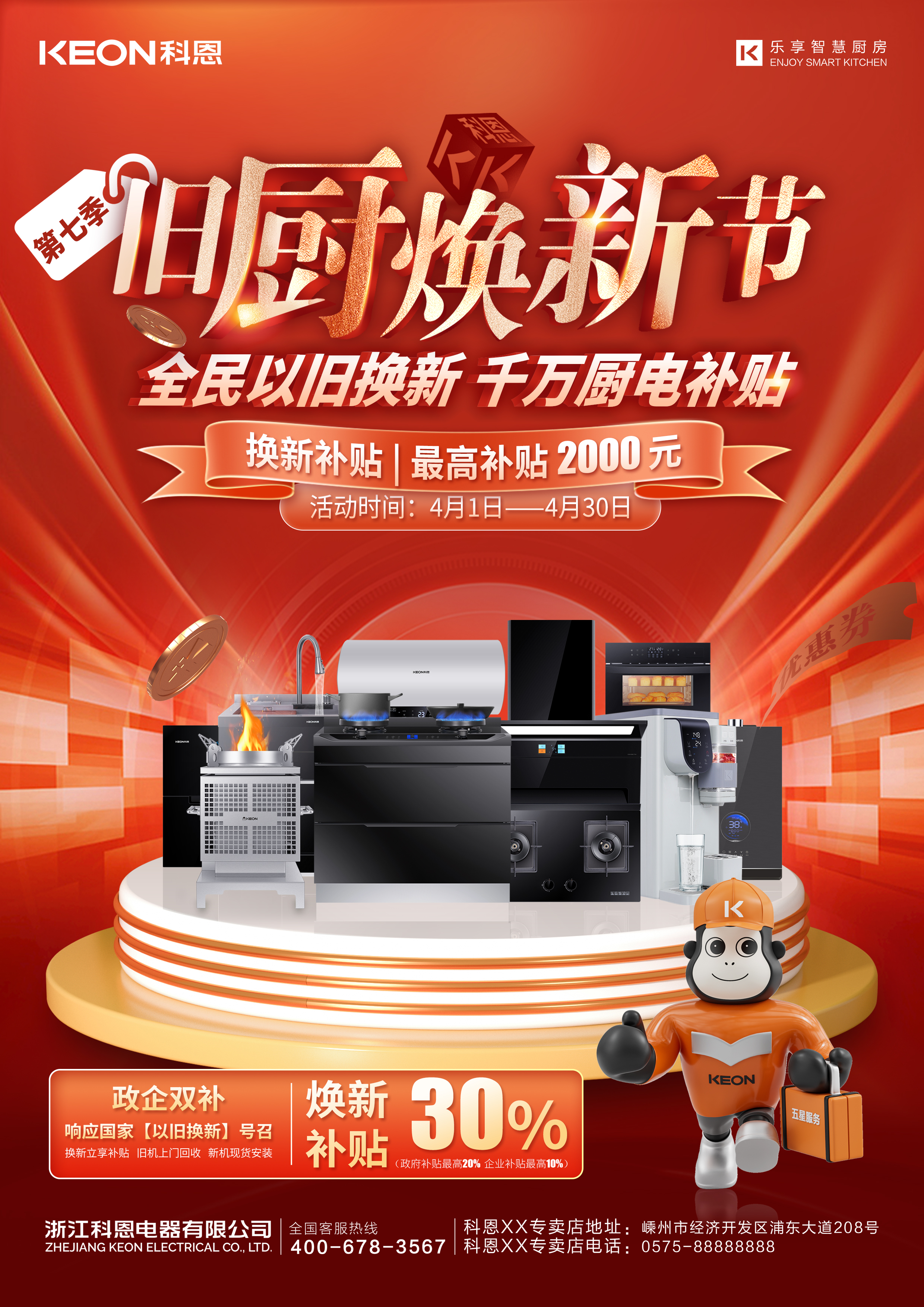 活動(dòng)期間,科恩8年以上老用戶憑購買憑證可享受上門免費(fèi)安檢服務(wù)。即刻前往科恩線下門店或官方線上商城,預(yù)約換新服務(wù)。科恩電器,始終陪伴在您和家人身邊,守護(hù)廚房每一刻。不再讓舊廚具拖累您的烹飪熱情,科恩電器助您廚房煥然一新。趕緊參與舊廚煥新活動(dòng),讓您的廚房跟上時(shí)代的步伐!