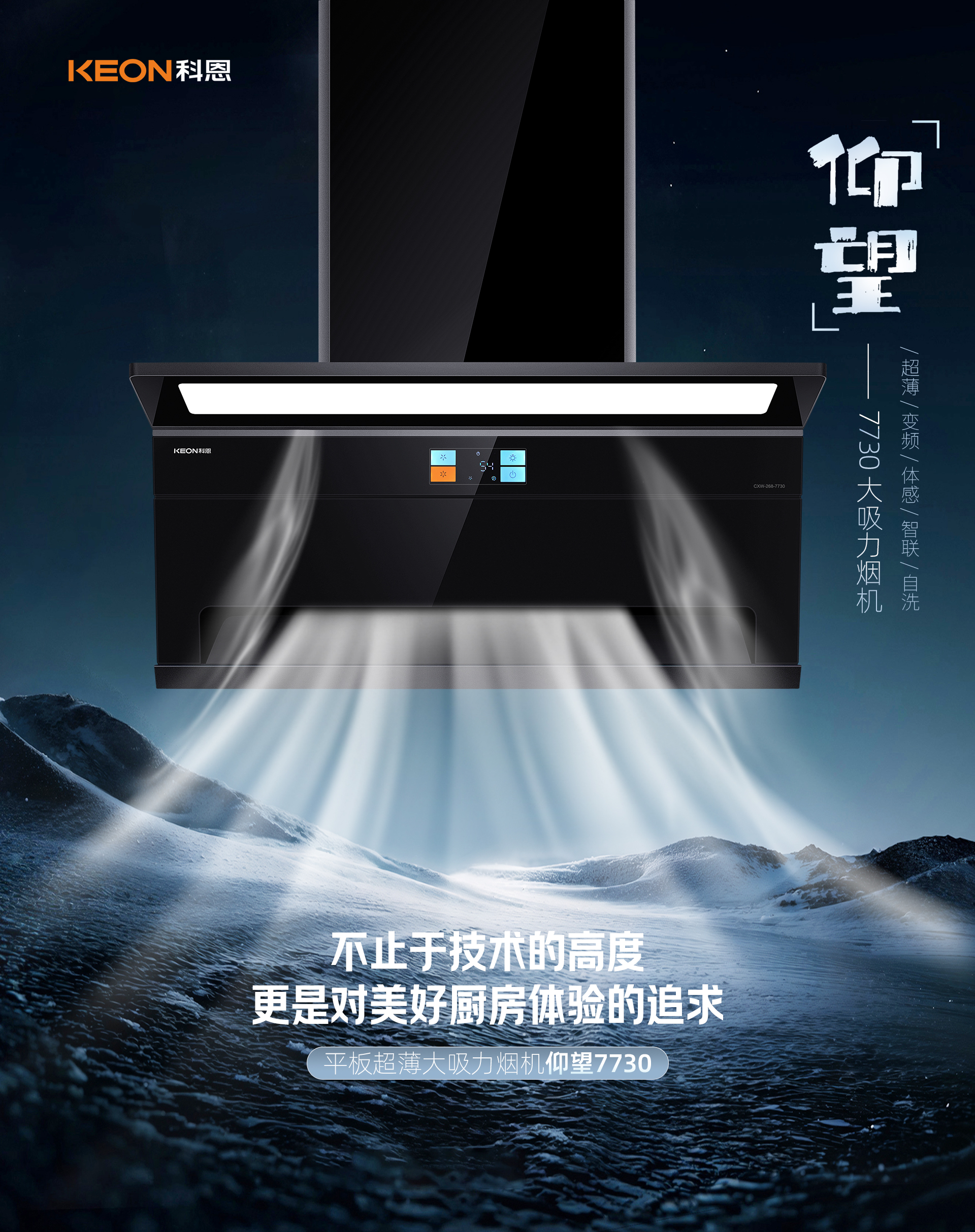 科恩7730煙機開啟高效烹飪新時代!當2cm超薄機身遇見120°天鵝頸設計,7730煙機重新定義廚房美學。特氟龍一體成型機身美觀大氣,拒絕油污附著。揮手智控讓烹飪更便捷,隔空一揮即可開關機,調節風量,告別油膩!0.5m³開闊空間,顛勺再不怕碰頭,烹飪動作更瀟灑。