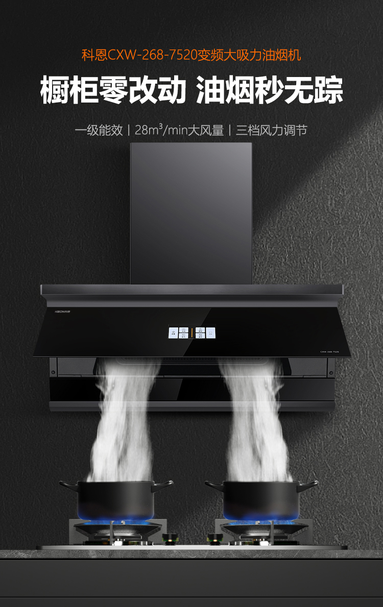 暑氣至濃,且享清涼!科恩匠心守護,破暑向前行,7520 煙機為你打造清爽廚房,無需大動干戈,就能讓廚房煥然一新,定義凈煙美學,重獲呼吸自由,開啟大暑烹飪的清涼之旅,讓 7520 煙機成為你夏日廚房的貼心伴侶!
