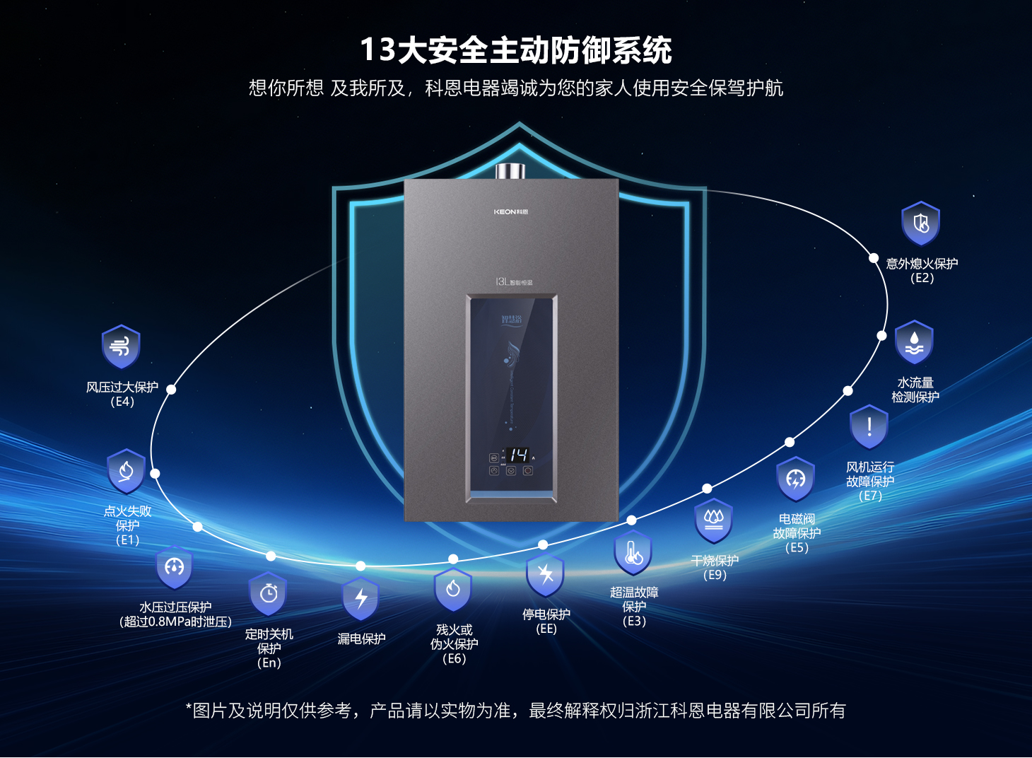 靜音節(jié)能,綠色安心。智能分段燃燒技術(shù),讓沐浴始終宜人,風(fēng)機(jī)低速運(yùn)行超靜音,享受寧靜的沐浴體驗(yàn),熱效率高達(dá)89%以上,節(jié)能更環(huán)保,老房高層也能暢享穩(wěn)定熱水。十三重護(hù),安全無憂。13重全天候安全保障,守護(hù)全家溫暖,過熱、過壓、熄火保護(hù)三重防護(hù),意外停電或煙道堵塞時(shí)自動(dòng)斷氣,定時(shí)關(guān)機(jī)保護(hù),蜂鳴提⽰及報(bào)警功能,全面杜絕安全隱患,專注享受沐浴無后顧之憂。
