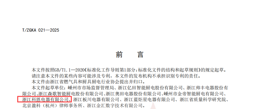 從品質(zhì)堅(jiān)守到標(biāo)準(zhǔn)引領(lǐng),科恩電器始終以“誠信、創(chuàng)新、卓越”的精神深耕廚電領(lǐng)域。此次參與團(tuán)標(biāo)起草,既是榮譽(yù)更是責(zé)任。未來,科恩既要持續(xù)以卓越工藝技術(shù)提供廚房整體配套解決方案,守護(hù)千萬家庭健康生活;更將充分發(fā)揮標(biāo)桿作用,在行業(yè)信用體系建設(shè)與標(biāo)準(zhǔn)制定中貢獻(xiàn)更多智慧。相信在科恩等領(lǐng)軍企業(yè)的帶動(dòng)下,廚具廚電行業(yè)將邁向更規(guī)范、更健康的發(fā)展新階段!