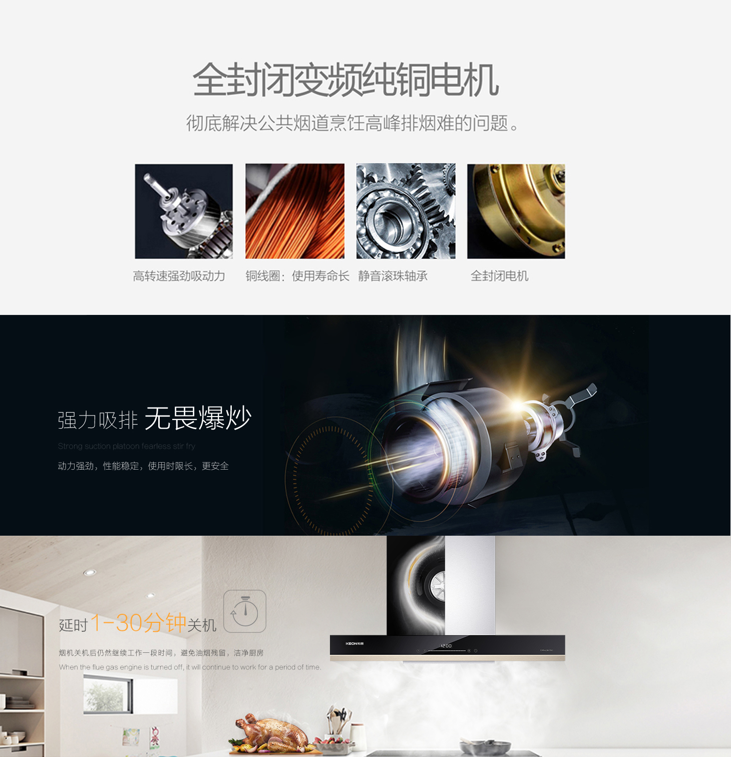 全腔900MM攏煙區,比普通煙腔更寬更深,有效鎖住油煙不外溢。