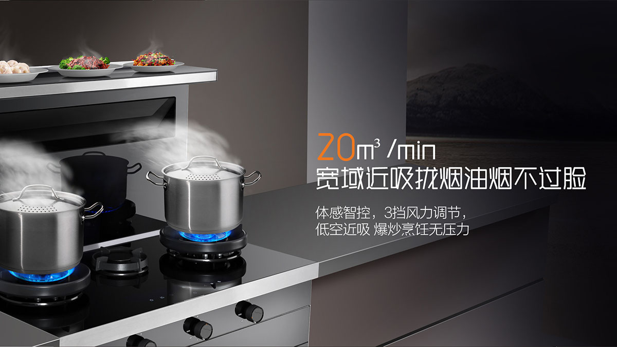 - 21.5m3/min寬域近吸攏煙,油煙不過臉,烹飪更隨心