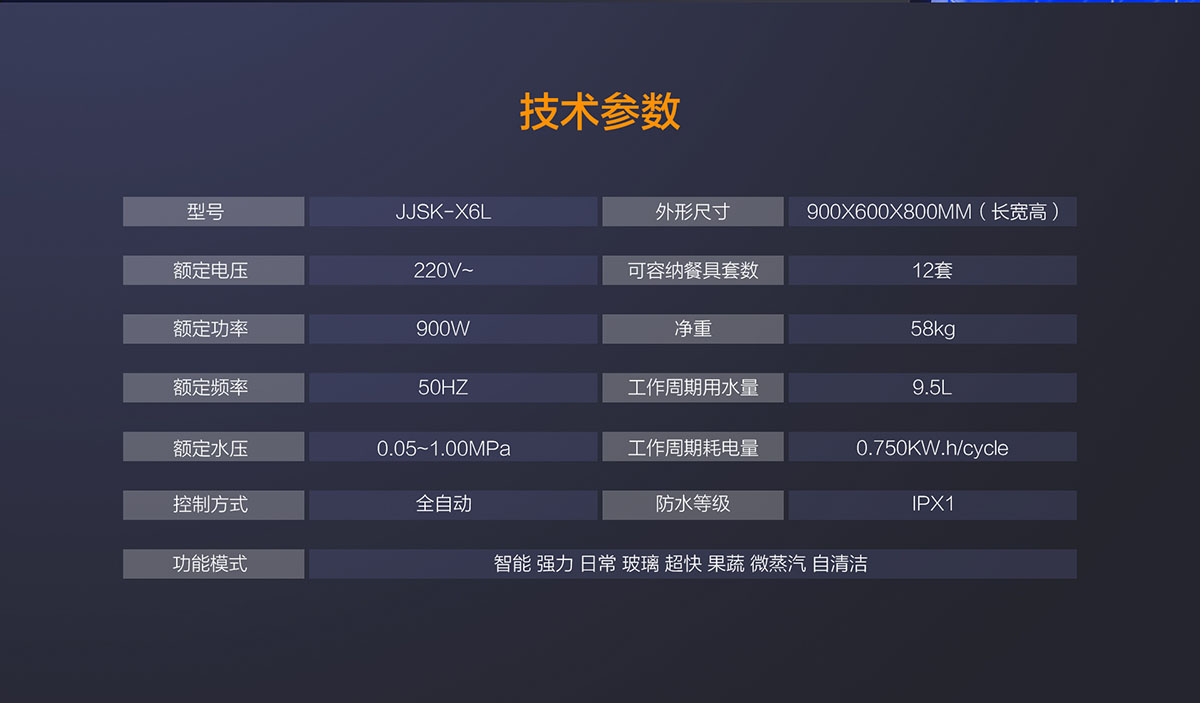 洗碗機功率:900W