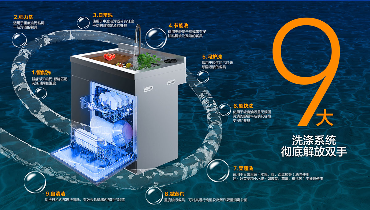 大洗滌系統,滿足洗碗、洗果蔬各種需求