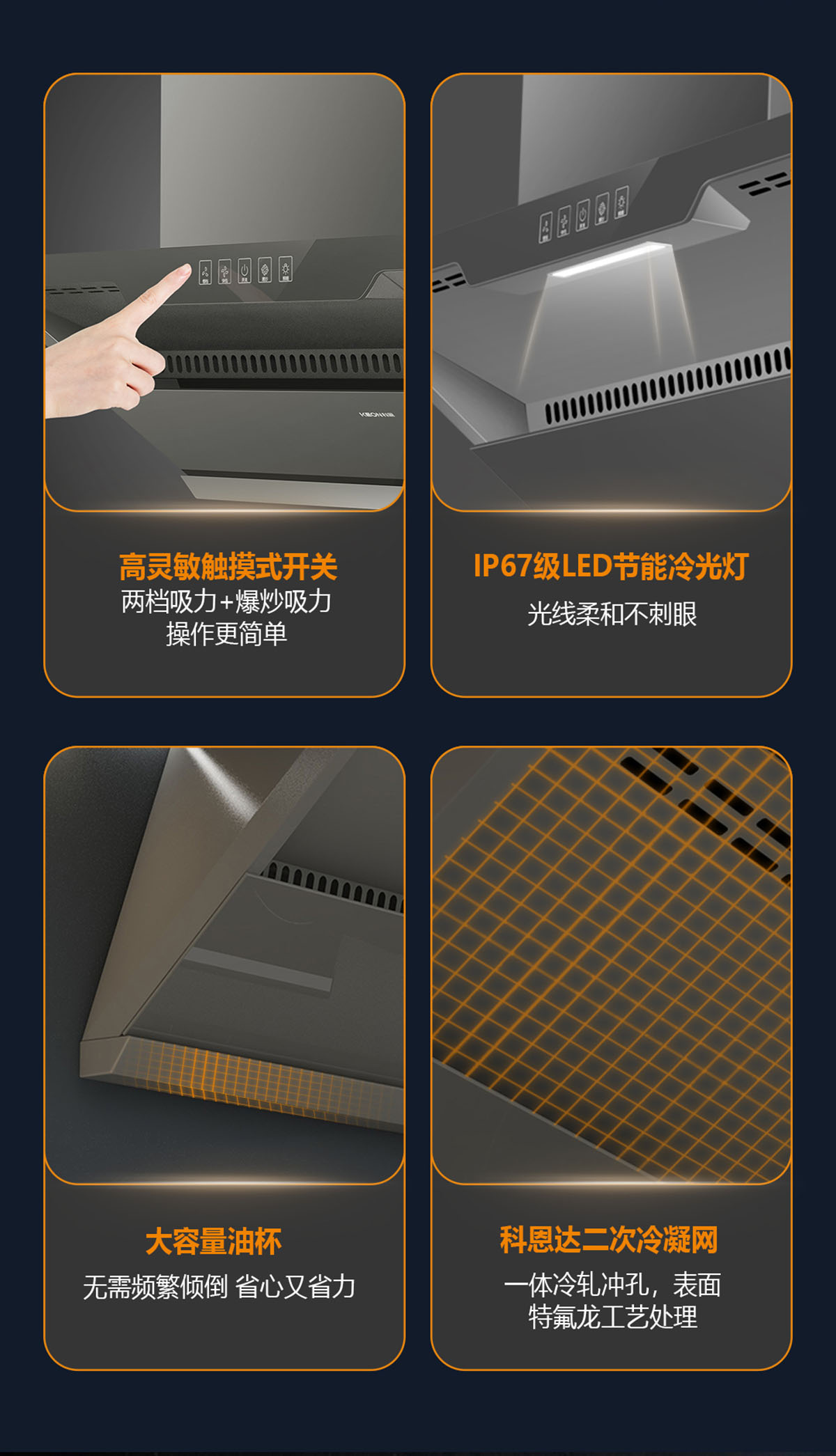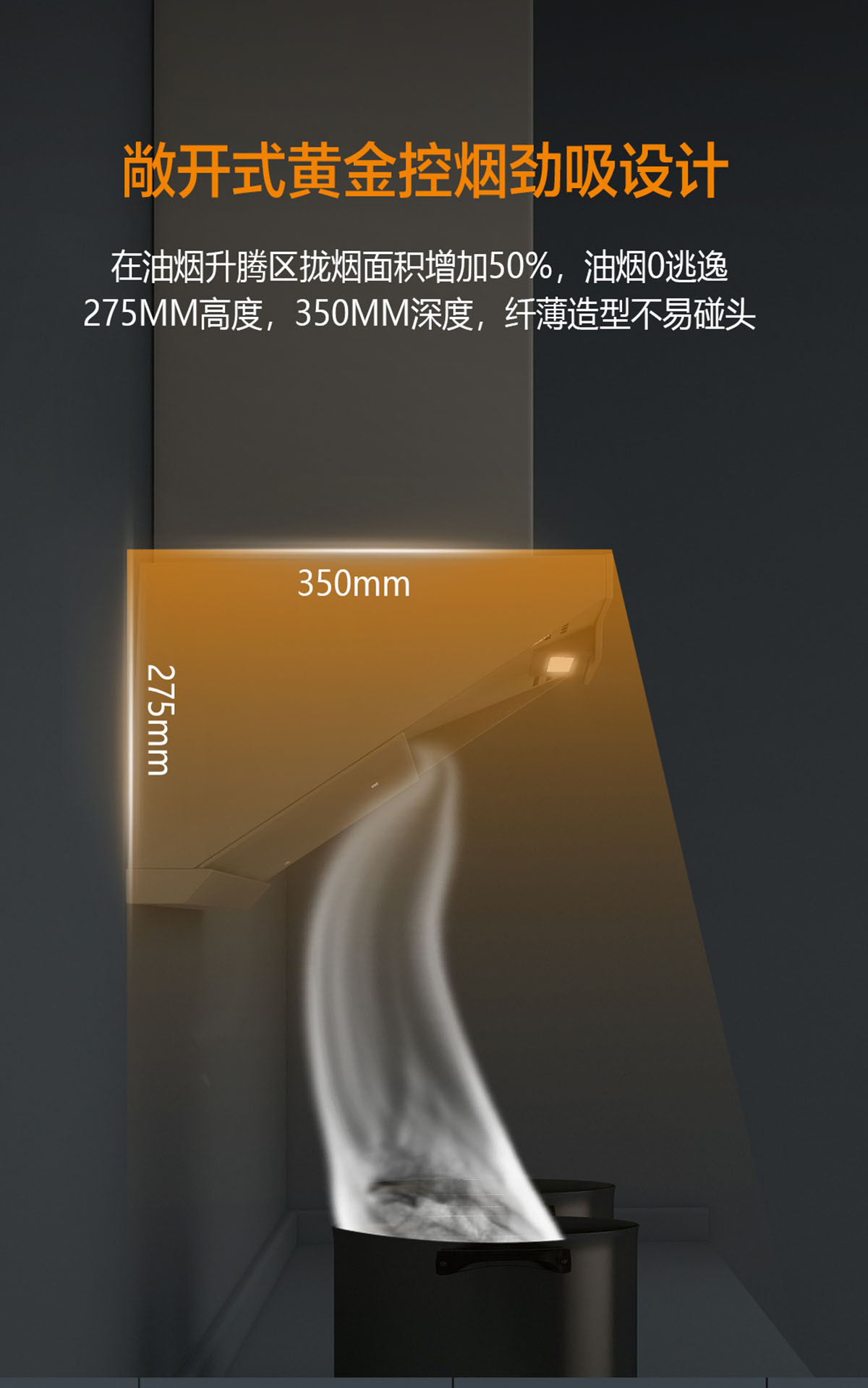 黃金控?zé)焺盼O(shè)計,攏煙面積增加50%,油煙0逃逸