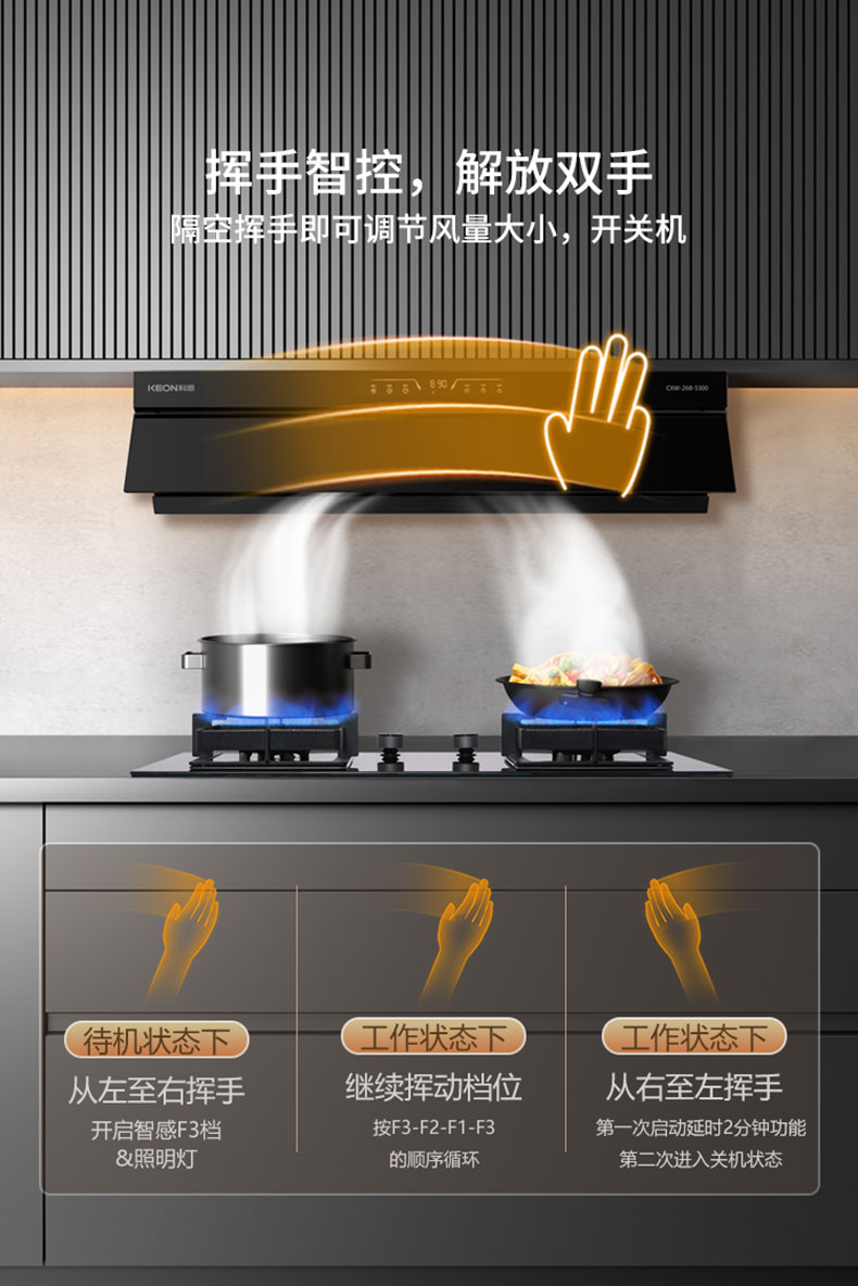 2min延時凈吸,徹底清除廚房內(nèi)殘余油煙