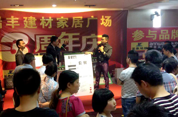 現(xiàn)場活動參與的品類包括家電、家具、衛(wèi)浴、窗簾等等,可以說是所有的裝修物料一應(yīng)俱全,商場內(nèi)也是云集了國內(nèi)一線各大品牌加盟。在活動還沒有正式開始前,現(xiàn)場已經(jīng)有多位業(yè)主提前下單并且領(lǐng)取到了精美禮品。著名主持人黃總利用自己豐富的建材行業(yè)知識,大大調(diào)動了消費者的積極性,將現(xiàn)場氣氛一次次的推向高潮。此次周年慶在商家薄利多銷的同時,又讓消費者低價購買到了自己喜歡的商品,實現(xiàn)了雙贏。